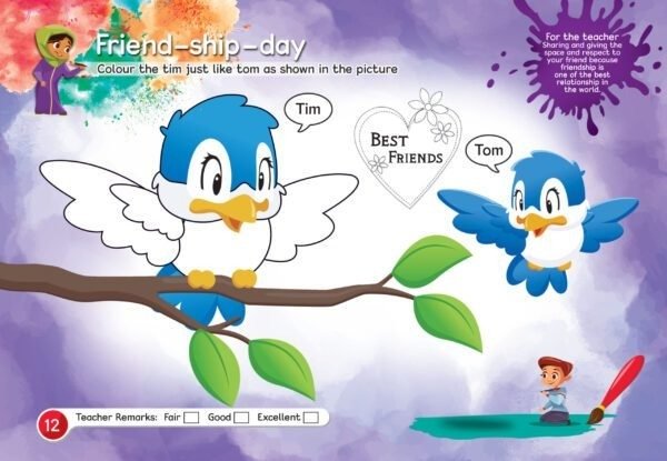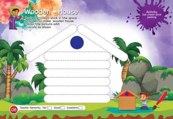 The series includes various activities of drawing, colouring, tracing painting, pencil shading, paper cutting, paper folding, paper craft, pasting objects, making impression, pattern making using different techniques like air blowing technique, etc.