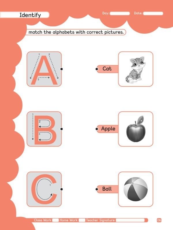some salient festures of the copy series . To develop the creative skills of a child we have designed a ācopy seriesā this series comprises 9 copies step (1) is meant for nursery class. In the copy step(1) touch & feel the sound its mean sensorial page . tarce and pattern and colour the object . step(2) is meant for kg1 class and step(3) is meant for kg2 class . work sheets sticker pasting