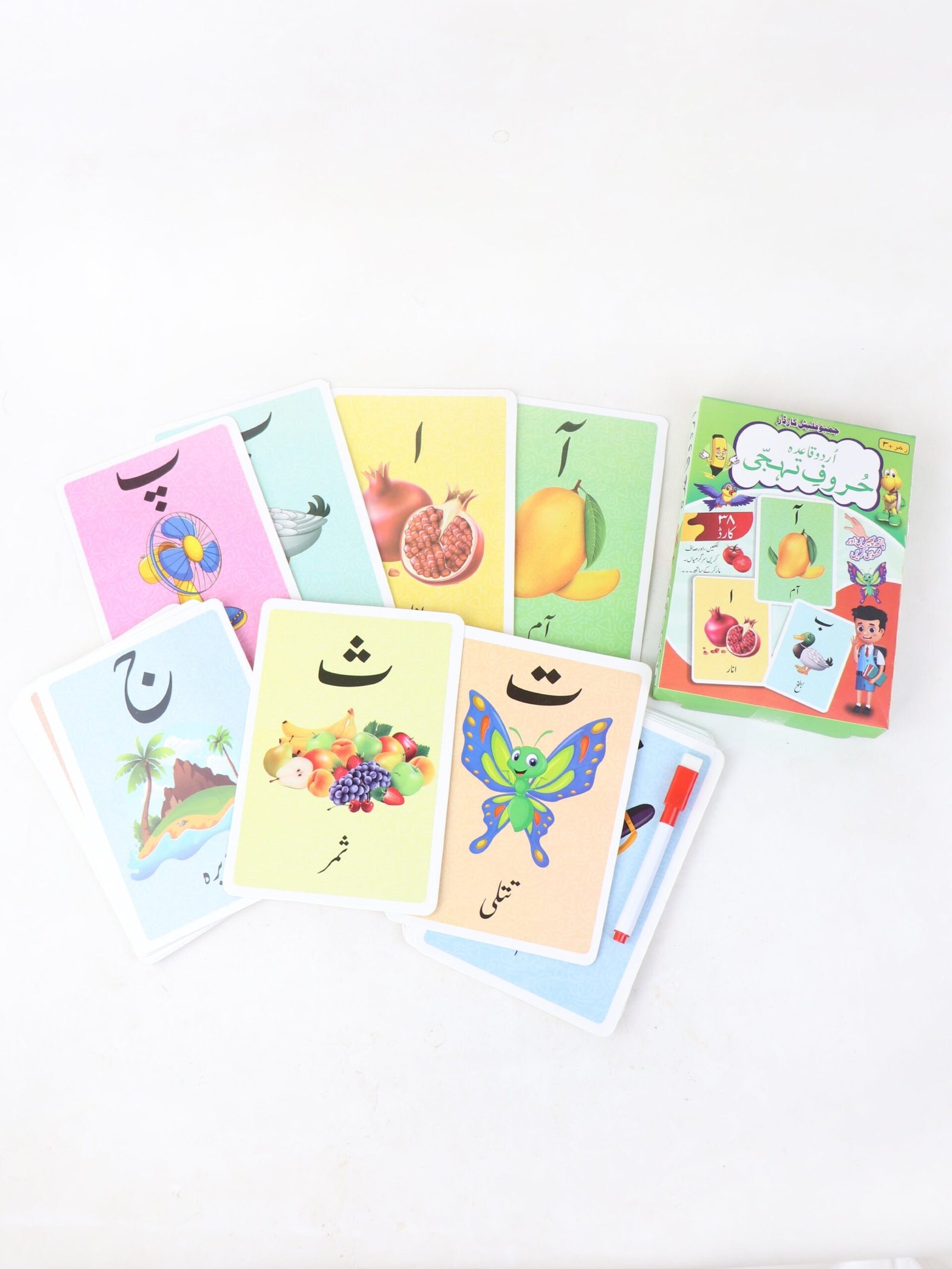 Help your child learn Urdu alphabets in a fun and interactive way with Jumbo Huroof e Tahajji Flash Cards. Designed for early learners, these extra-large flash cards feature bold Urdu letters, attractive visuals, and an easy-to-write surface for practice using the free erasable marker. Perfect for preschool, kindergarten, Montessori, homeschooling, and classroom learning. These cards help kids recognize letters, improve writing skills, and build a strong foundation in Urdu learning.