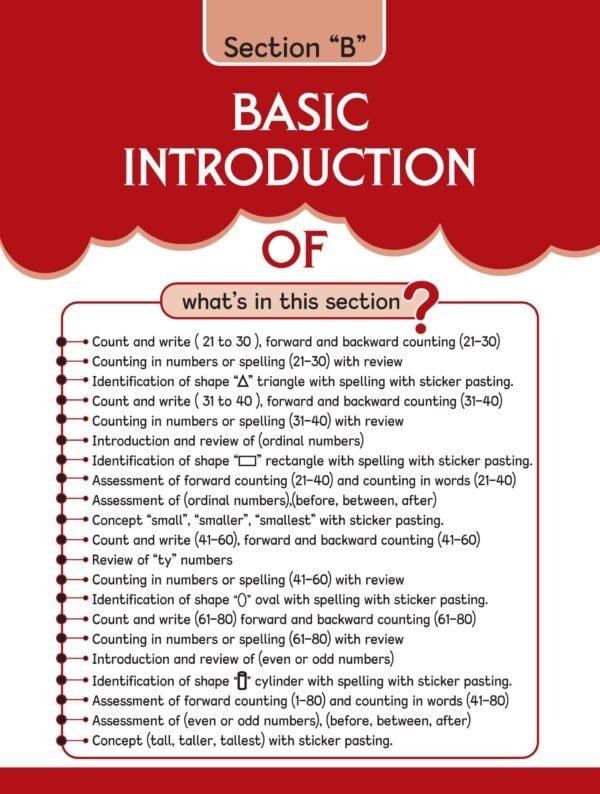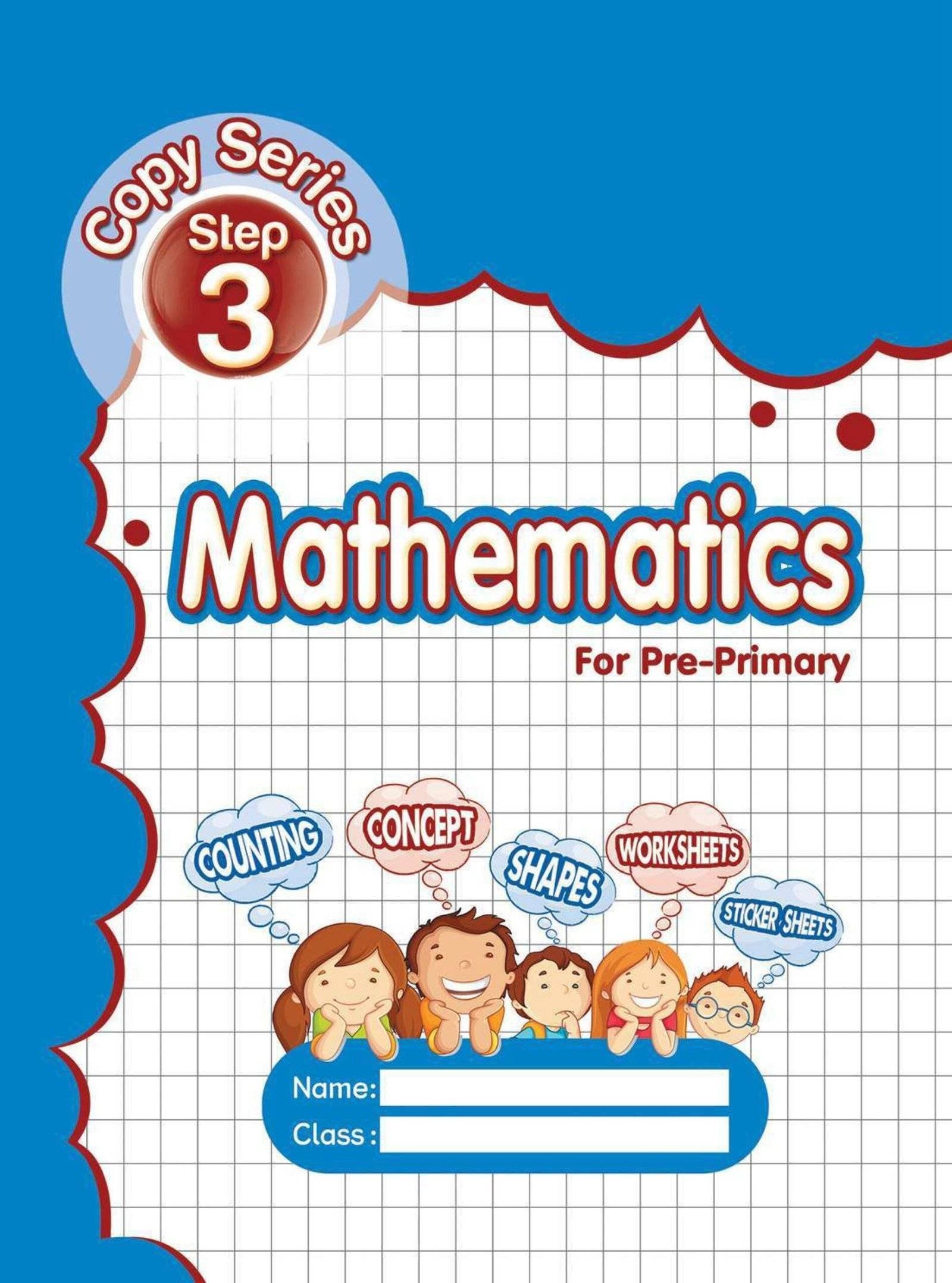 some salient festures of the copy series . To develop the creative skills of a child we have designed a ācopy seriesā this series comprises 9 copies step (1) is meant for nursery class. In the copy step(1) touch & feel the sound its mean sensorial page . tarce and pattern and colour the object . step(2) is meant for kg1 class and step(3) is meant for kg2 class . work sheets sticker pasting