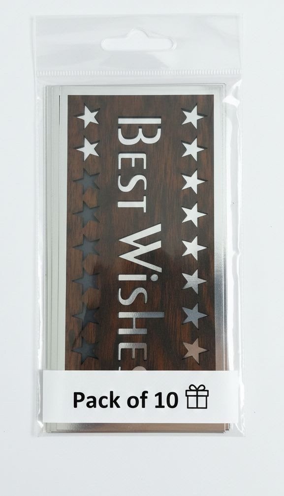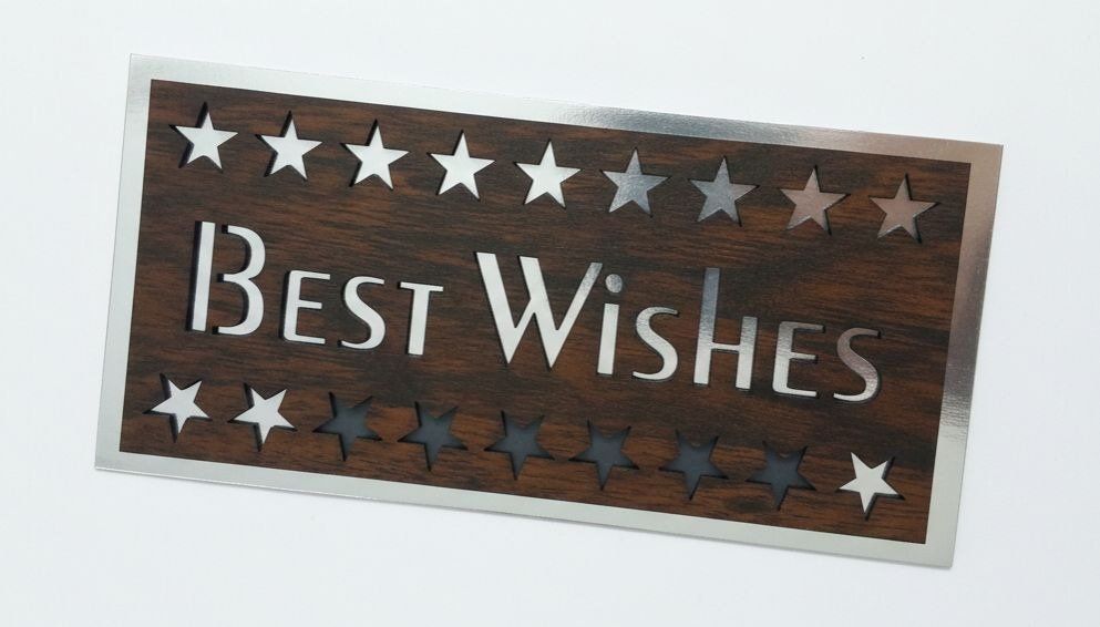 Premium Laser-Cut Wood: “Best Wishes” ka 3D wooden cut-out design aur side par star patterns isse bohat luxury banate hain.