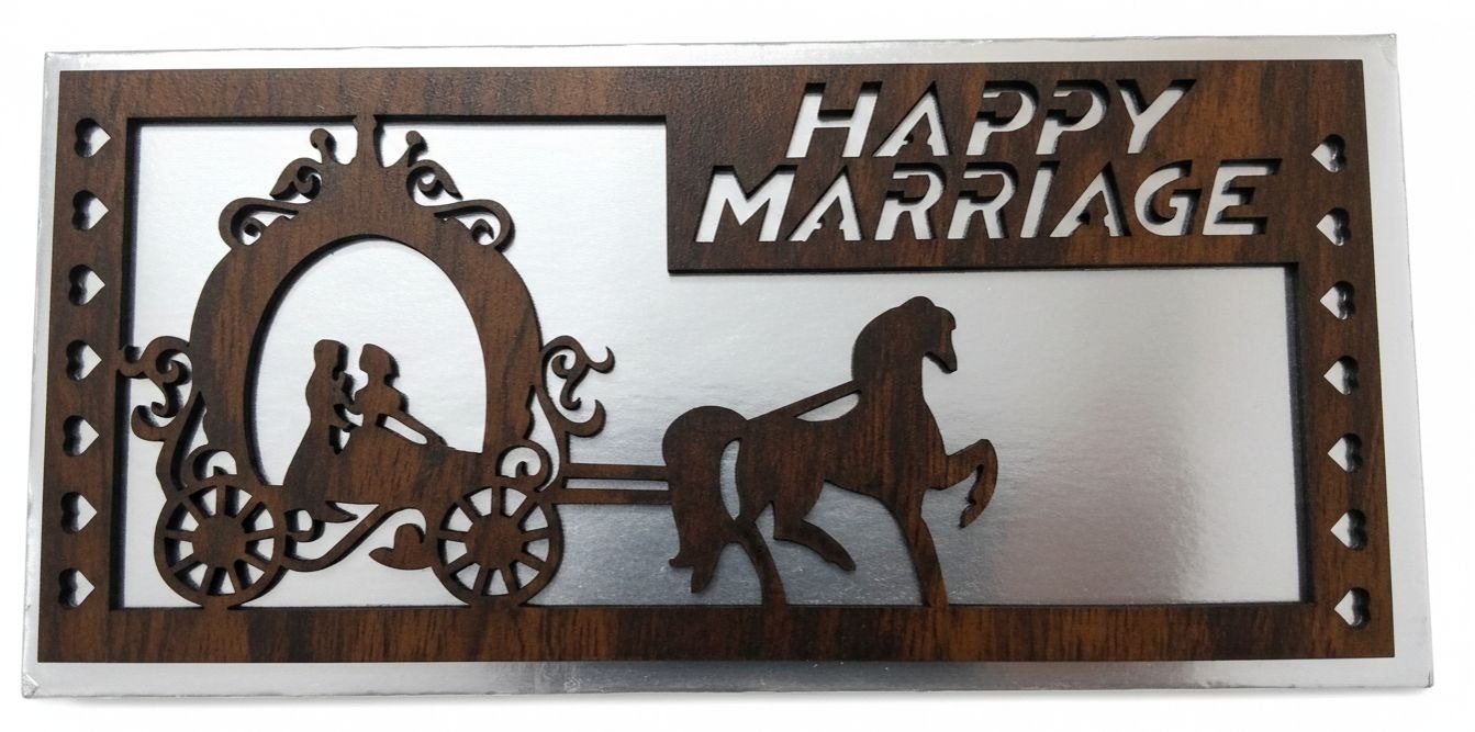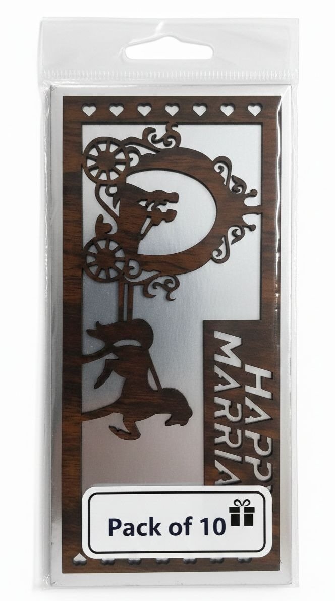Pack of 10 - Premium Happy Marriage Greeting Cards with Royal Horse Carriage Wooden Design Pack of 10 - Premium Happy Marriage Greeting Cards with Royal Horse Carriage Wooden Design