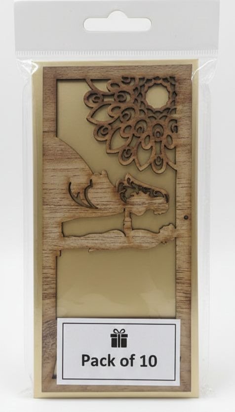 Kya aap kisi shadi par aam paper card se behtar kuch dena chahte hain? Humara ye Pack of 10 Laser-Cut Wooden Style Cards aapke wedding gift ko aik luxury touch deta hai. Ye sirf aik card nahi, balkay aik haseen tohfa hai jo dulha aur dulhan hamesha sambhal kar rakhenge.